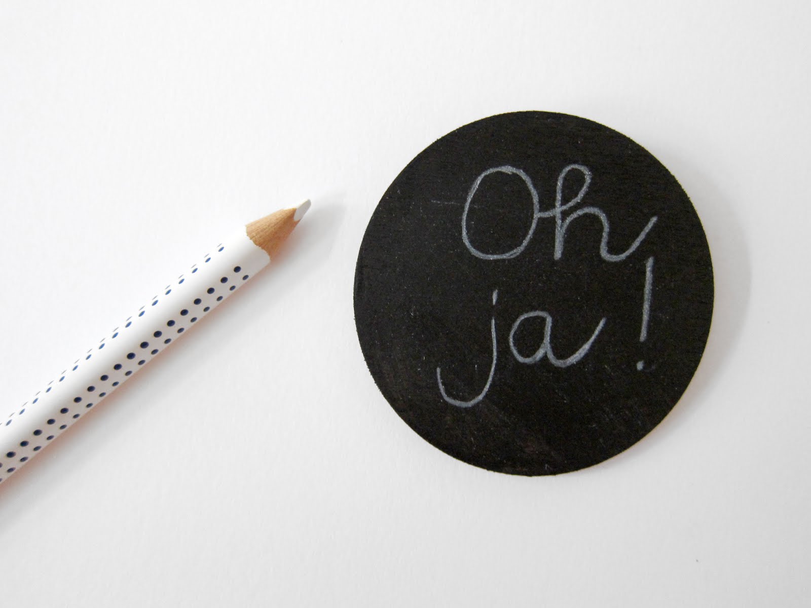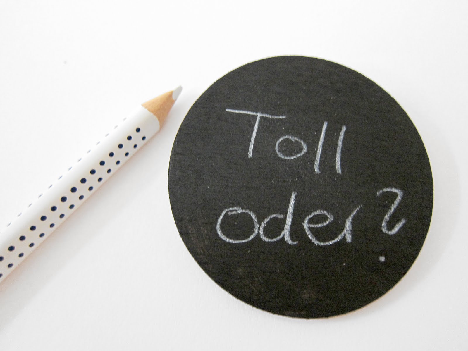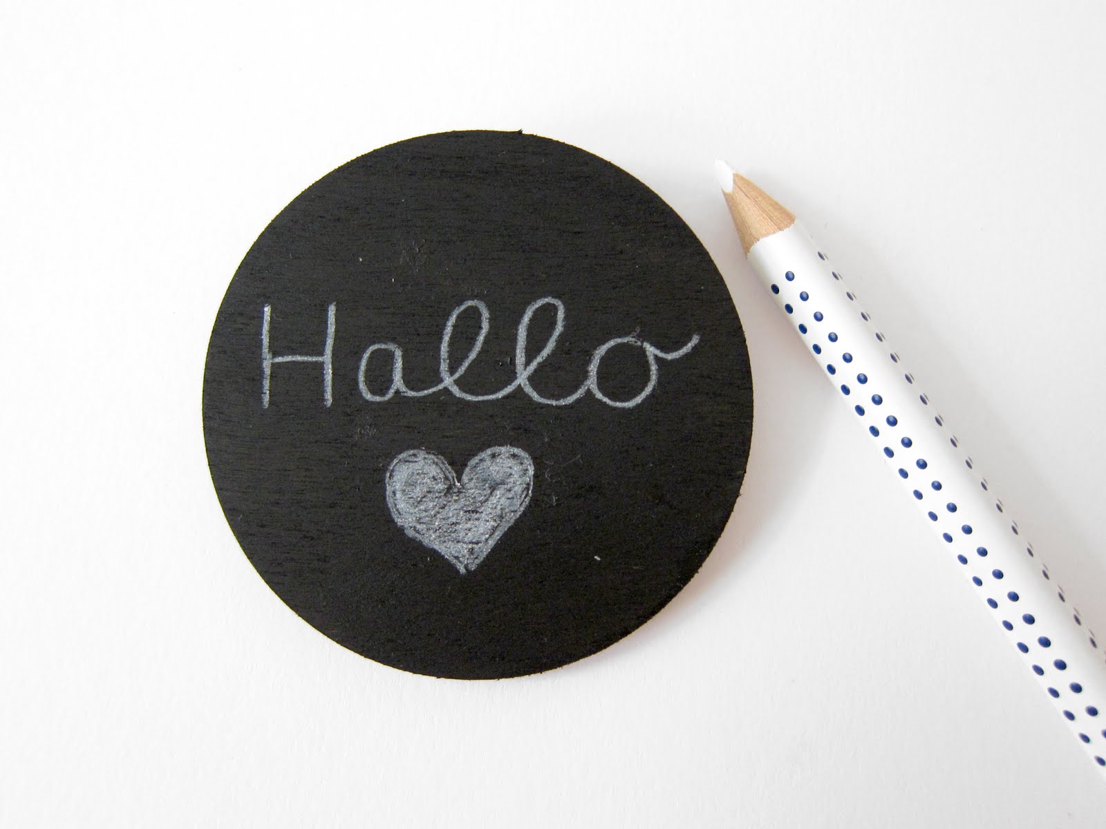 3. Mit dem Kreidestift können nun witzige Botschaften auf die Brosche geschrieben werden – der Fantasie sind keine Grenzen gesetzt!