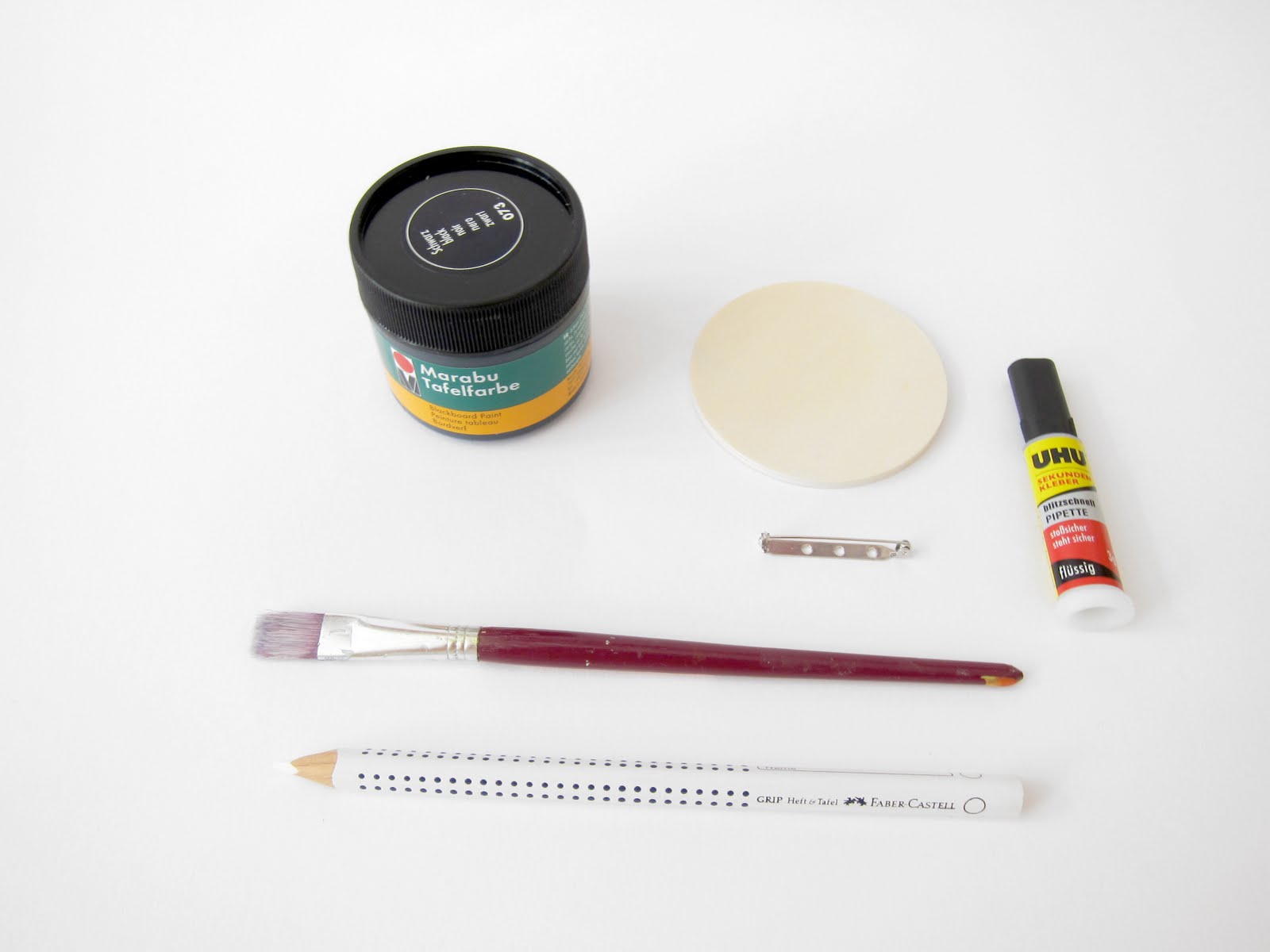 2. Die Farbe gut trocknen lassen und die Broschennadel mit dem Sekundenkleber auf der Rückseite festkleben.