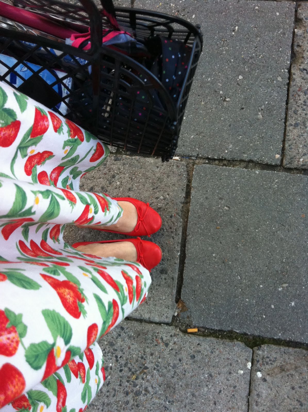 Mir gefallen die braunen Schuhe ganz besonders. Und das gelbe Tuch. Und die gelbe Strumpfhose. Und der rote Blumenrock. Und der Erdbeerrock. Und die rote Hose.